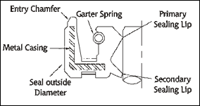 In some instances,tha shaft is stationary and the housing rotates.Sealing of a lip type seal with low differential pressure is normally a result of a designed interference fit between tha shaft snd the flexible sealing element,which is usually fitted with a garter spring.